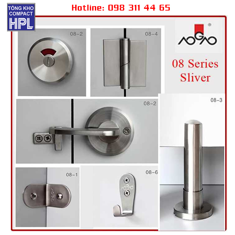 Một sản phẩm vách ngăn vệ sinh do hai bộ phận cấu tạo thành: Tấm compact hpl và bộ phụ kiện Inox. Phụ kiện vách ngăn compact được thiết kế dùng riêng cho vách ngăn vệ sinh.
