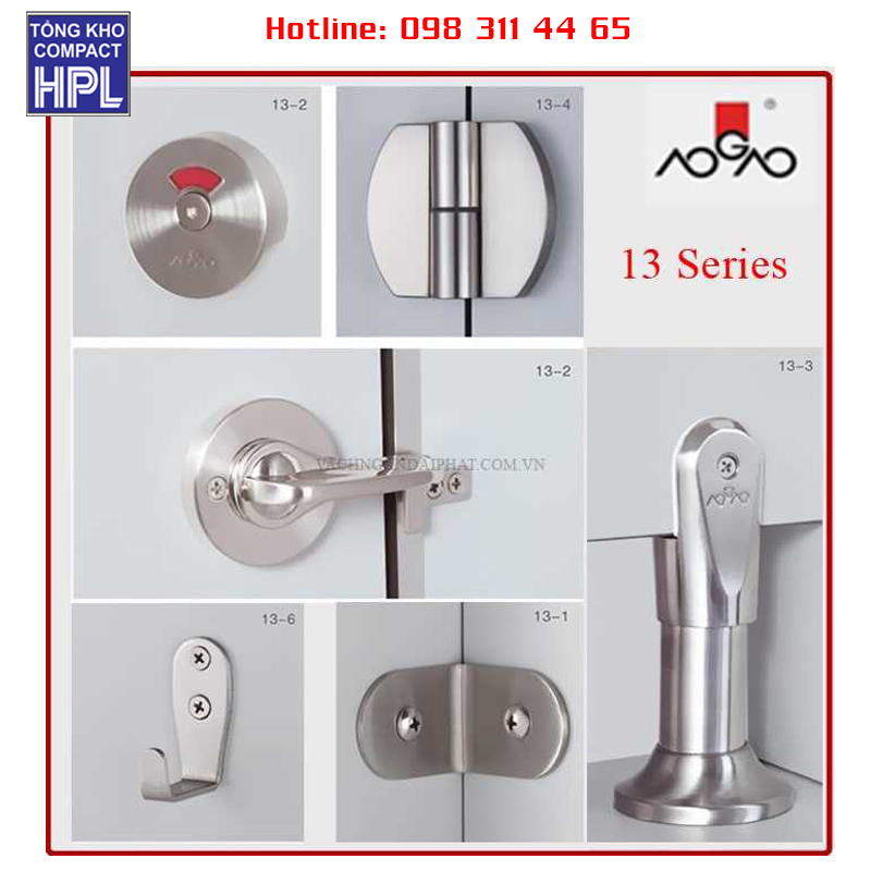 Một sản phẩm vách ngăn vệ sinh do hai bộ phận cấu tạo thành: Tấm compact hpl và bộ phụ kiện Inox. Phụ kiện vách ngăn compact được thiết kế dùng riêng cho vách ngăn vệ sinh.